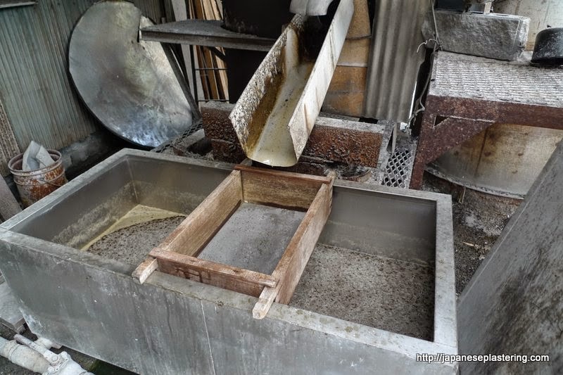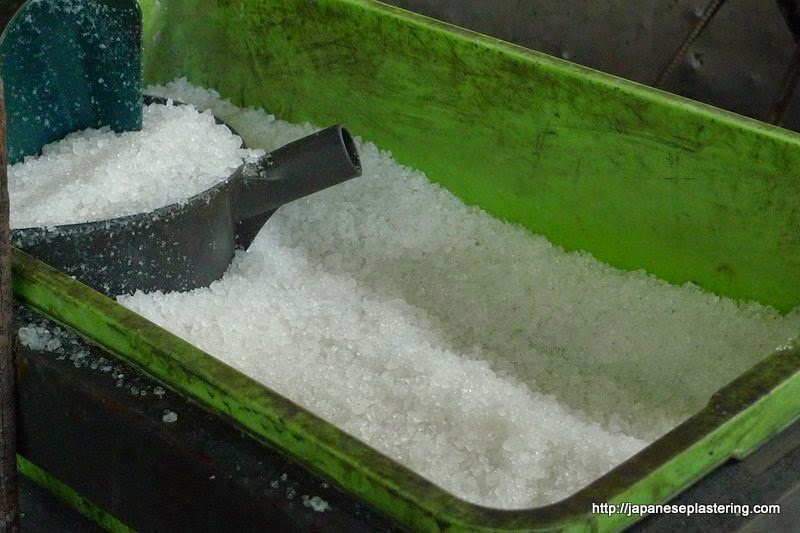 One special characteristic of Japanese lime plasters is that salt is mix with lime stone before firing. Through the addition of salt, less water is required to make the finish plaster workable. When less water is included in the plaster, less water evaporates during curing, which in turn reduces cracking and increases strength.