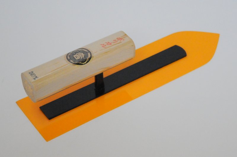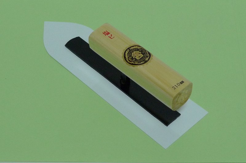 Square, slightly flexible application and finishing trowel. Excellent at applying and finishing plaster on drywall or over other base coats. Aburayaki is a softer steel than honyaki, and therefore pulls and pushes material slightly better.