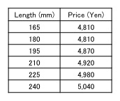 240mm 0.5mm 9,800JPY